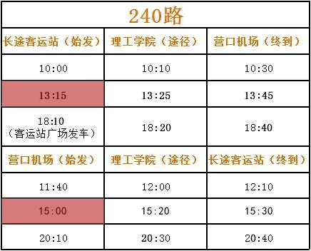 從2017年4月10日起,240路機場專線由每日下午1:15(客運站發(fā)車);15:00(藍旗機場發(fā)車),更改為每周二、四、六下午發(fā)班,每周一、三、五、七停運。